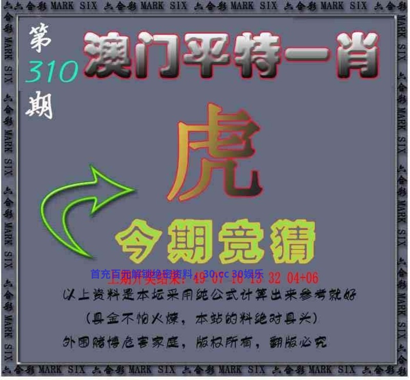 | 310期:平特一尾✦【8尾】✦开:虎16错 |